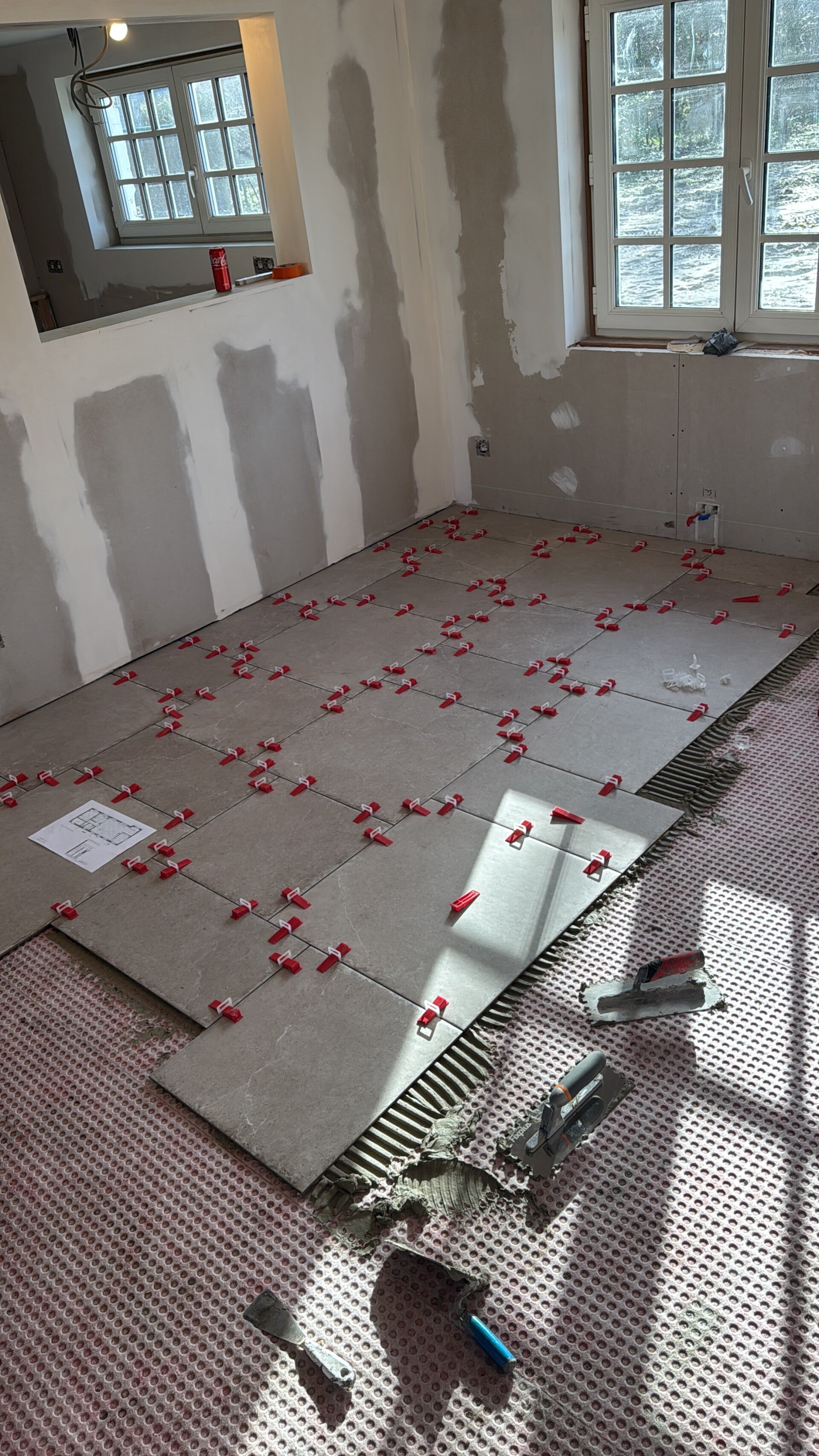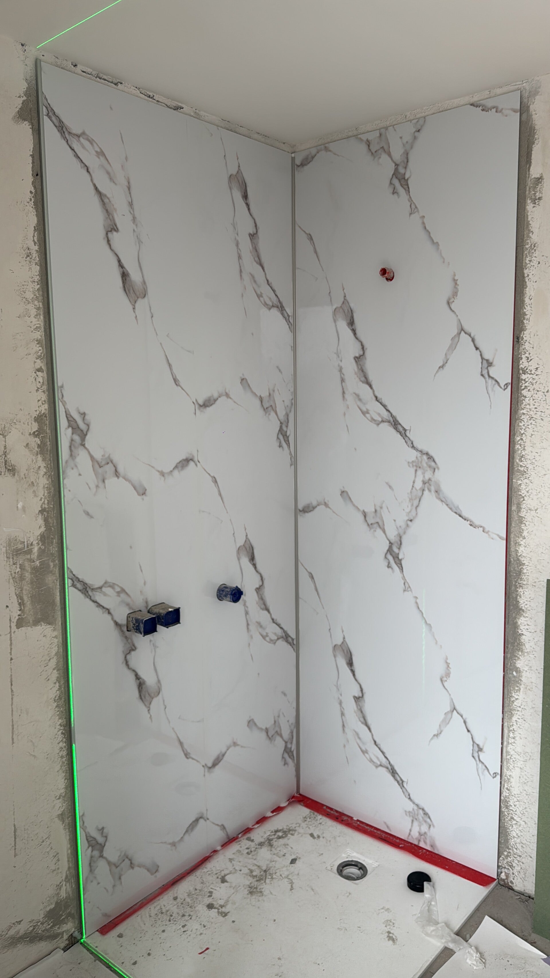 plaatsen keramisch parkettegel 2 appartementen + plaatsen douche wandpanelen + wc platen plaatsen